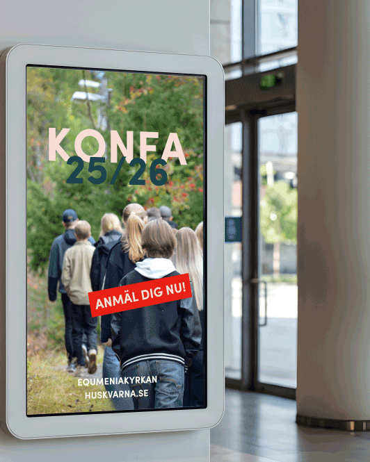 Att budskapet syns är allt i kommunikation. I Huskvarna upptäckte vi att information ofta missades på affischer på anslagstavlor. Efter lite research så beslutade vi att skaffa skärmar för digital skyltning där buskapet anpassas efter de personer som rör sig i kyrkan. Vi har fått mycket god respons och även sätt att församlingen upplever det enklare att få information.